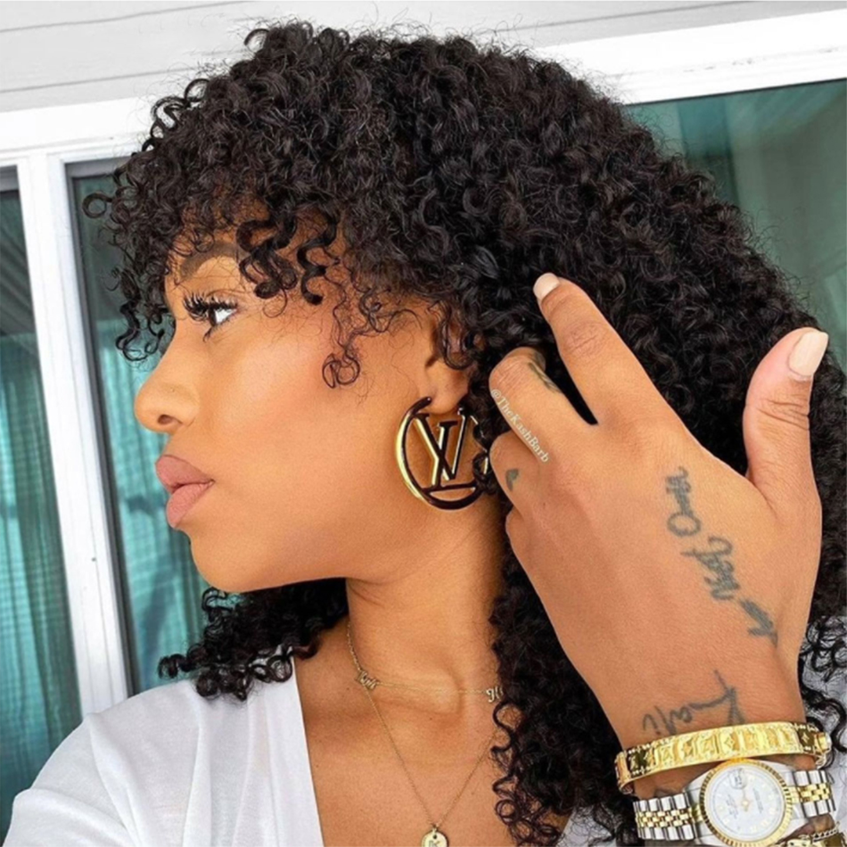 Trending Style Machine Made Wigs With Bangs Kinky Curly Human Hair High Density 180% Soft and Bouncy