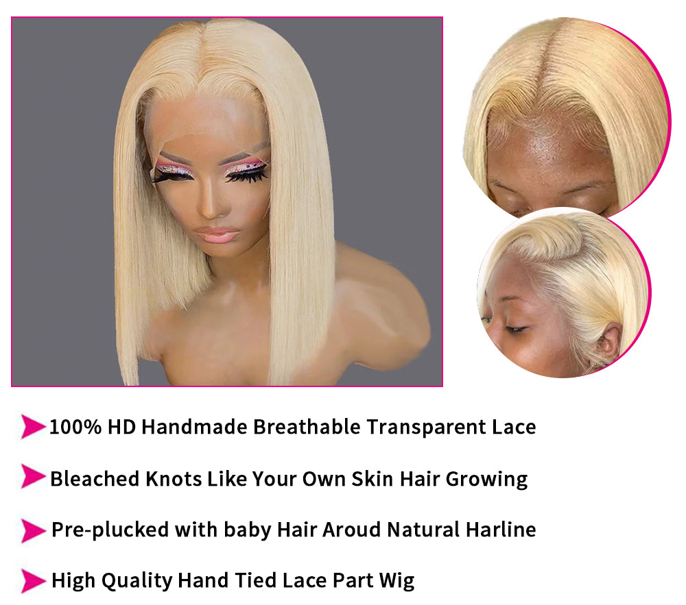 Pre Plucked 613 Blonde Bob Lace Frontal Wig Middle Part High Quality