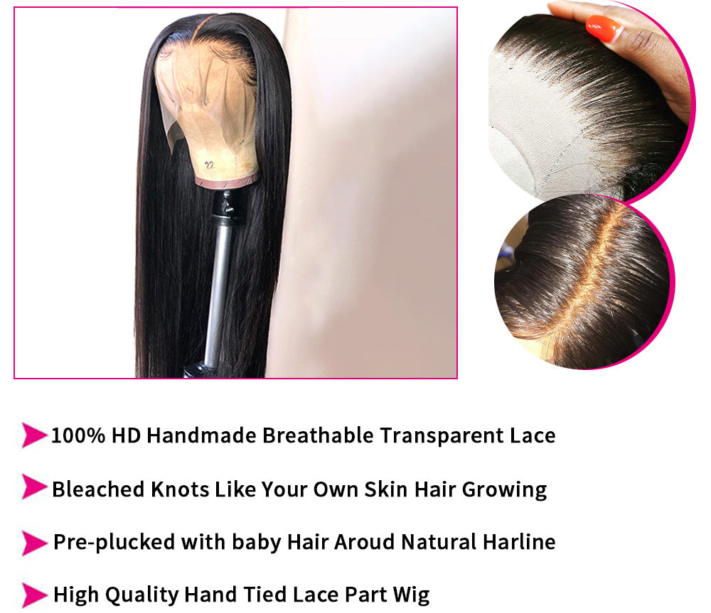 Pre Plucked Straight 360 Lace Wig Glueless HD Transparent Lace 180% Density