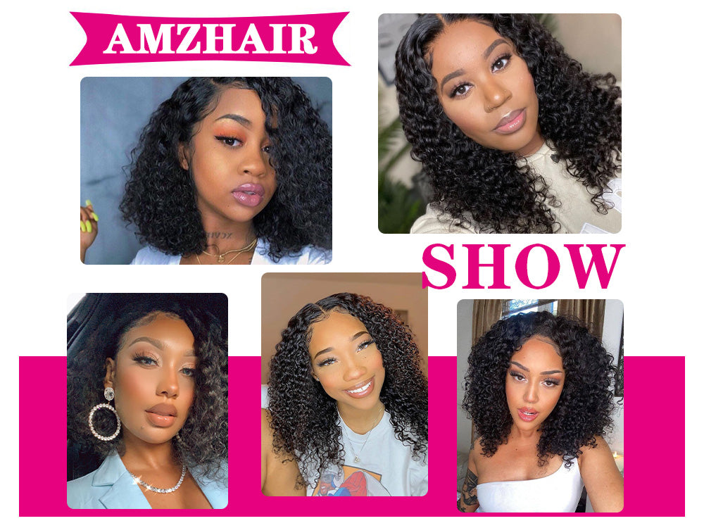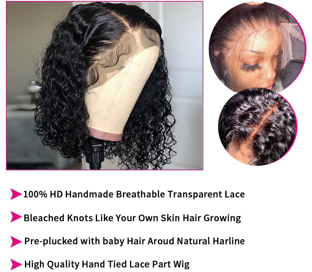 180% Density Deep Wave Human Hair Bob Wig HD Transparent Lace Front Wig Pre Plucked