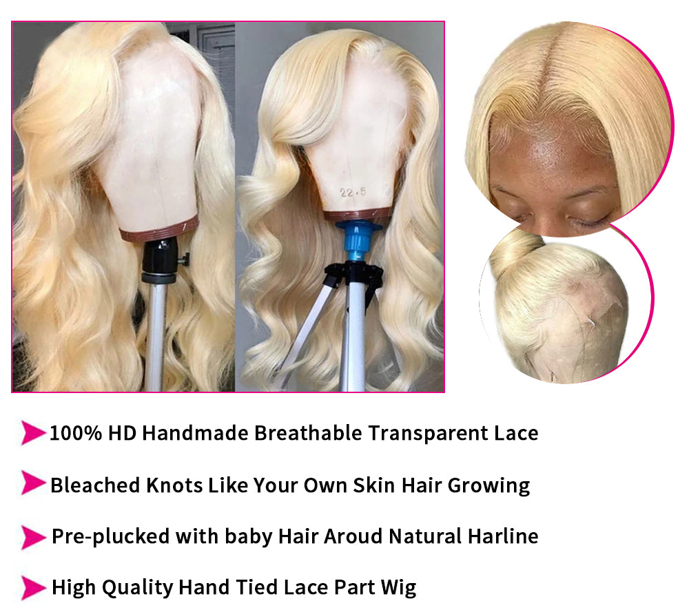 High Density Pre Plucked Body Wave 613 Blonde Lace Frontal Wig